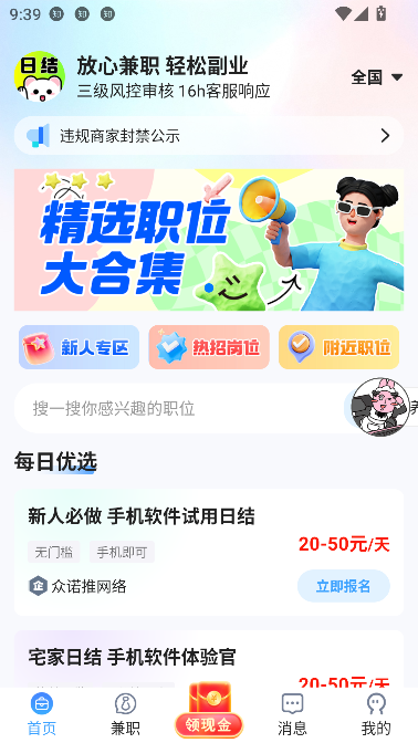 放心兼职所有企业与岗位均经过平台实名认证与多重审核,杜绝虚假信息、押金诈骗和黑中介。我们坚持“先审核、再发布”,为你筑起一道坚实的安全防线。智能推荐+精准筛选,让你5秒锁定心仪职位;在线沟通、一键报名、进度追踪……全流程手机搞定,省时省力更省心。每份兼职结束后,用户可对雇主进行匿名评价,形成公开透明的信用体系。你看得见别人的经历,也保护了自己的权益。