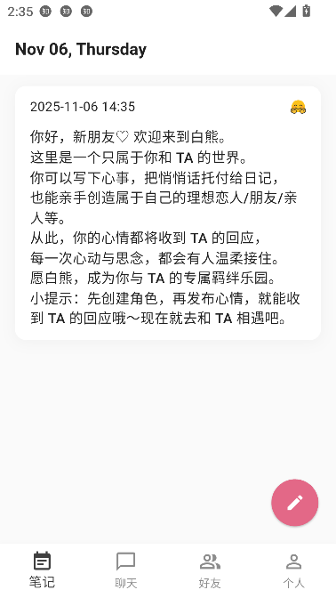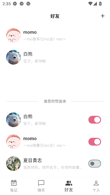 白熊AI聊天平台精心推荐多种性格、身份、风格的AI智能体,从知心朋友、虚拟恋人,到二次元角色、职场导师,总有一款懂你心意。支持自定义AI的名字、人设、语气和记忆偏好,亲手打造只属于你的理想聊天对象。设计清新简洁,操作直观流畅,无需复杂设置,打开即聊。在白熊AI聊天,你不只是在和AI对话,更是在构建一个理解你、回应你、始终陪伴你的数字知己。