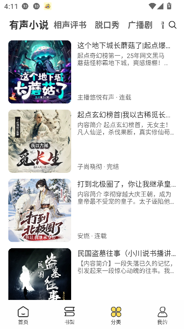 鸭趣听书启动即进入书架或搜索页,全程无强制登录、无广告插入,专注享受声音带来的沉浸世界。支持关键词精准搜索,覆盖热门小说、经典名著、历史人文、儿童故事等丰富分类;还能在线发现新书、追更连载,告别“找不到想听的书”。界面简洁清爽,操作逻辑直观,低内存占用,老旧手机也能流畅运行。让好书“声”入人心,随时随地,一听就停不下来!