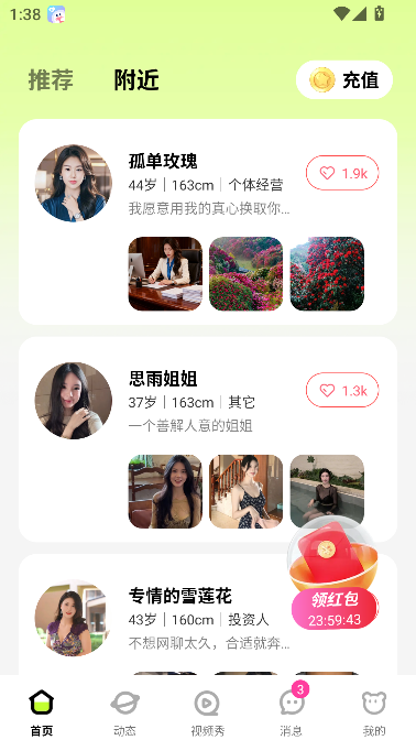 吟想可以通过细腻的文字表达、真实的声音互动、以及精心设计的兴趣话题,逐步展现真实的自我,遇见那些与你三观契合、爱好相投、灵魂同频的人,系统会基于你的兴趣标签、互动偏好与内容倾向,智能推荐志趣相投的用户,但绝不强制推送。每一次连接,都建立在双向选择与真实共鸣之上。无论你寻求的是知己、伙伴,还是潜在的人生伴侣,这里都愿意为你留一盏灯,等一个对的人。