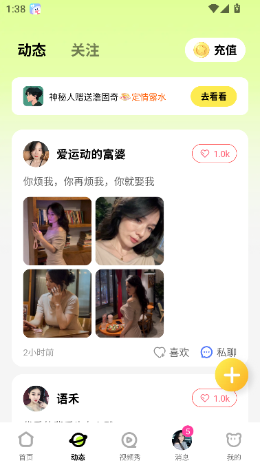 1、点击首页下方的动态按钮