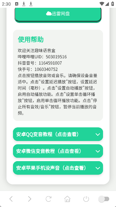 3、页面最下方贴心提供完整使用教程,手把手教你如何在 QQ、微信、游戏语音、直播软件 等其他平台中同步调用本语音包,真正做到“捷风语音,处处可用”!