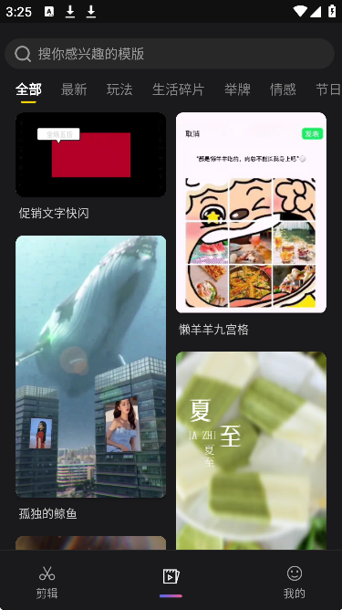 3、进入视频模板库,浏览涵盖节日祝福、旅行记录、美食分享、Vlog日常、营销推广等多类热门模板。选中喜欢的样式,替换素材、添加文字或音乐,即可 一键生成同款高质量视频,省时又出片!