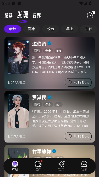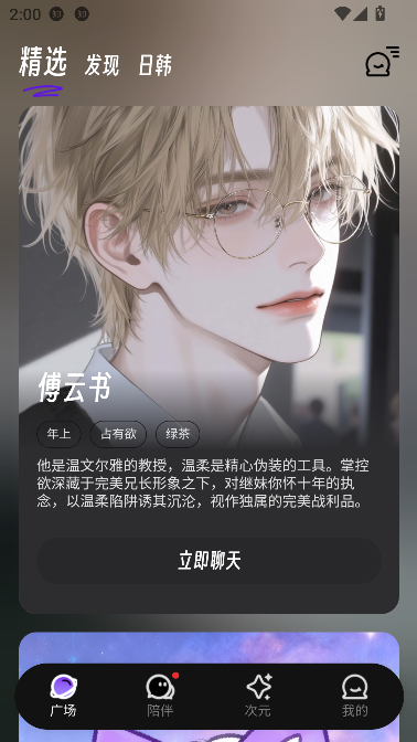 2、内置多位人气偶像男星风格的AI角色,支持自由选择你心仪的对象,随时随地开启专属聊天,满足你的追星幻想。