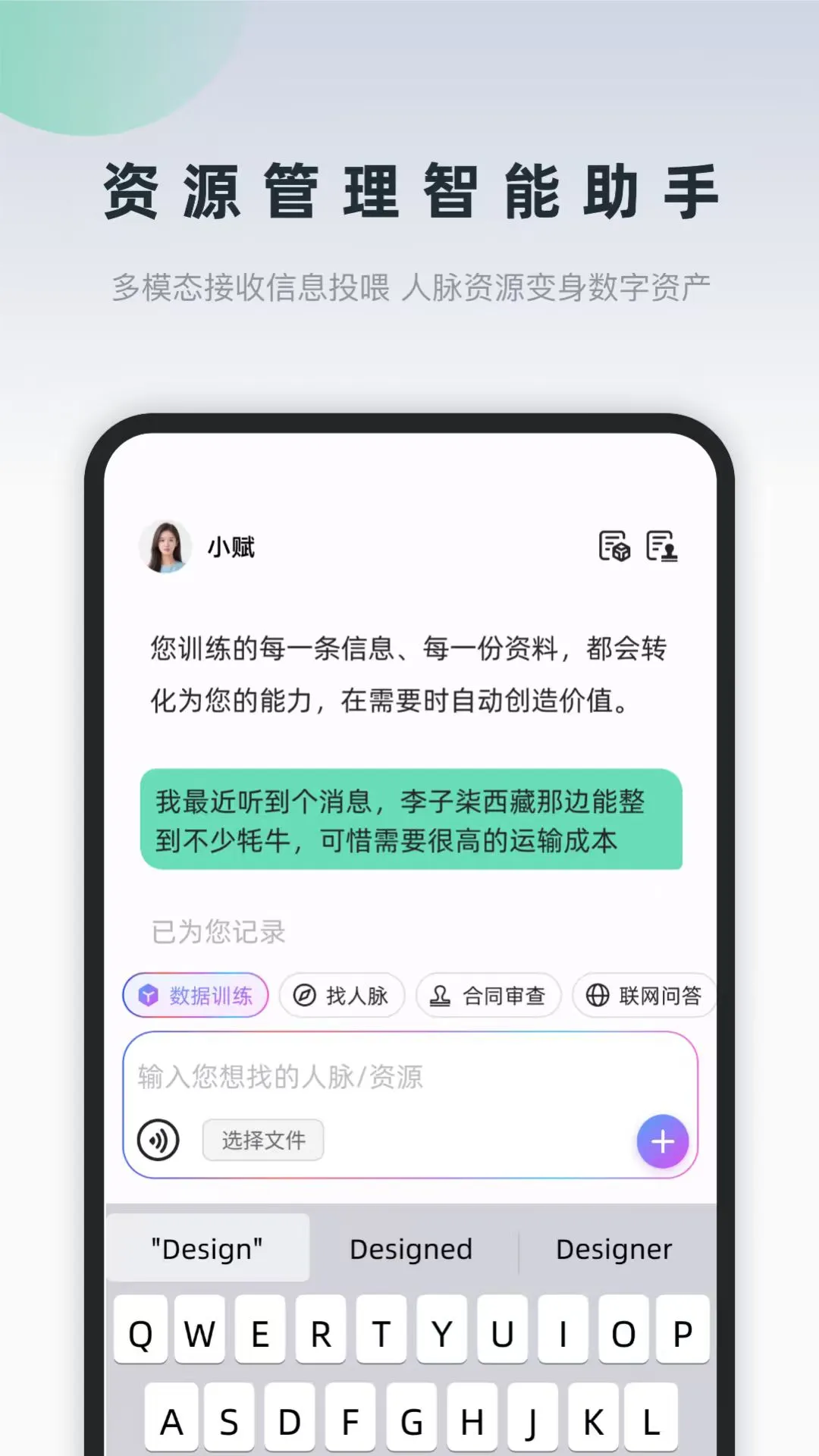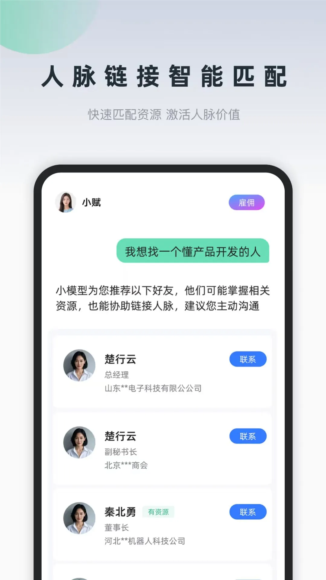 询赋是一款深度融合人工智能与社交经济的创新平台,致力于打造“AI驱动的价值型社交生态”。它不仅是智能助手,更是连接人与资源、需求与机会的高效协作网络。询赋,不止于社交,更在于共创。