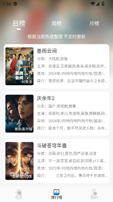 2、在排行榜页面可以看到近期影视剧合集