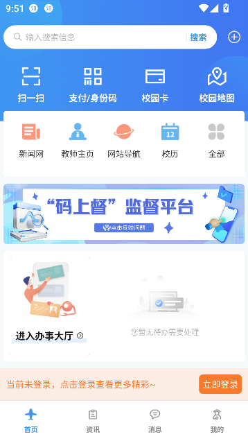 2、深度打通校园一卡通系统,支持线上充值、实时消费记录查询、水电费缴纳、门禁权限查看及卡片挂失等操作,服务范围涵盖食堂就餐、超市购物、浴室用水、宿舍门禁等多个校内生活场景,实现“一卡通行、一机掌控”的便捷体验。