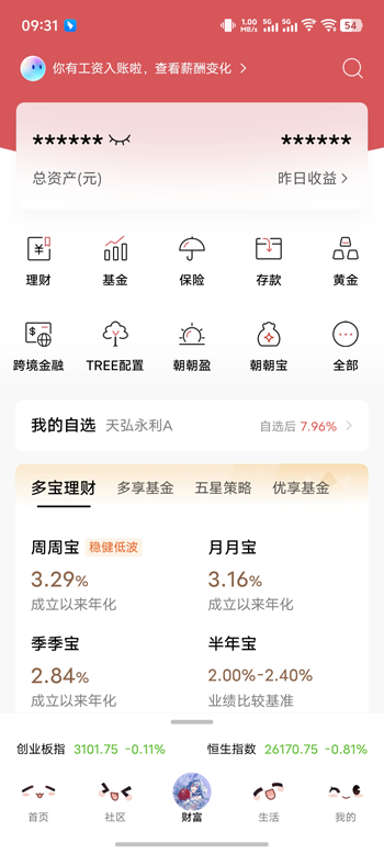 3、理财安心选:精选基金、保险、黄金、结构性存款等产品,专业投研团队保驾护航;