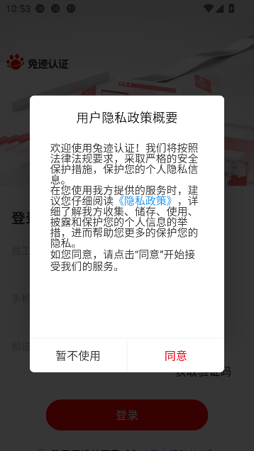 1、请下载兔迹认证App安卓官方版本,安装完成后打开应用。