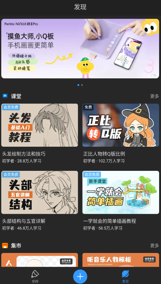 5.通过内置的【工具课程】,可免费学习软件基础操作与实用技巧,轻松上手电子绘画。