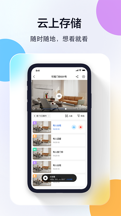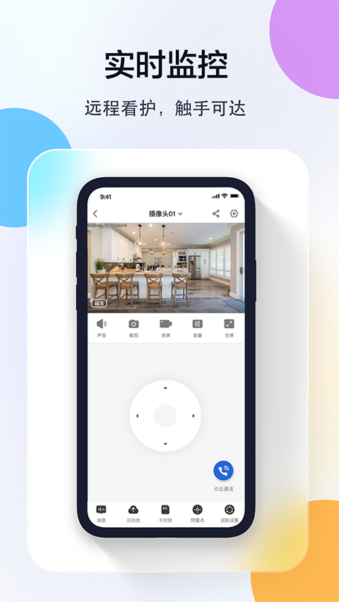 1、无论身在何处,打开手机即可实时查看家中、商铺、办公室等场所的高清视频画面。支持随时回放云端存储录像,重要时刻不错过,真正实现“一机在手,全局掌控”。