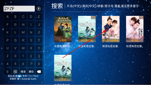 2、输入你想观看的影视名称(支持简称或关键词),从搜索结果中选择对应影片。