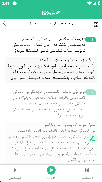 维语驾考App 是国内首款专为维吾尔语使用者设计的智能驾考学习工具,致力于消除语言障碍,让每一位学员——无论是否精通汉语——都能平等、便捷、高效地掌握驾驶理论知识,顺利通过驾照考试。
