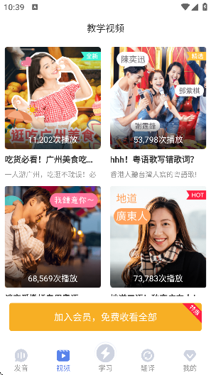零基础友好 · 10分钟入门专为完全不懂粤语的用户设计,提供“10分钟学会日常口语”速成课程。从粤拼(Jyutping)声母、韵母、九声六调开始,夯实发音基础。