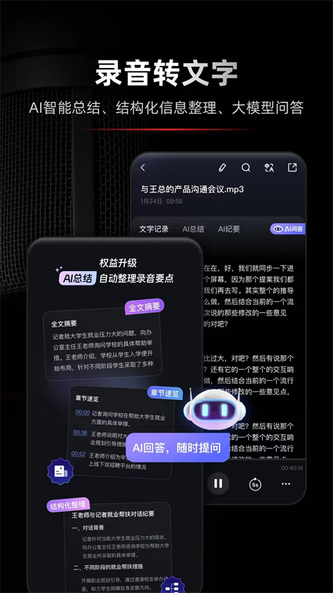 1、支持实时录音与本地音频文件一键转写为文字,精准识别会议、课堂、采访等内容,大幅提升整理效率,让声音“看得见”。