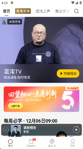 混沌大学App聚焦创新思维与商业认知,提供前沿课程、思维模型与实战案例,帮助用户打破认知边界,提升决策与创新能力。用混沌大学刷新你的思维每天10分钟,掌握高手的思考方式,看见更大的世界