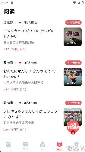 词库全面覆盖JLPT N5-N1、《新标准日本语》《大家的日本语》等主流教材,也支持自定义词书,满足不同学习阶段需求。