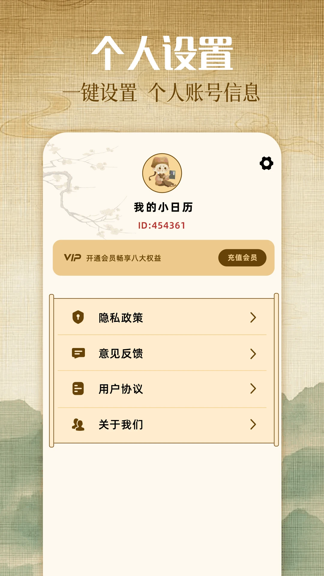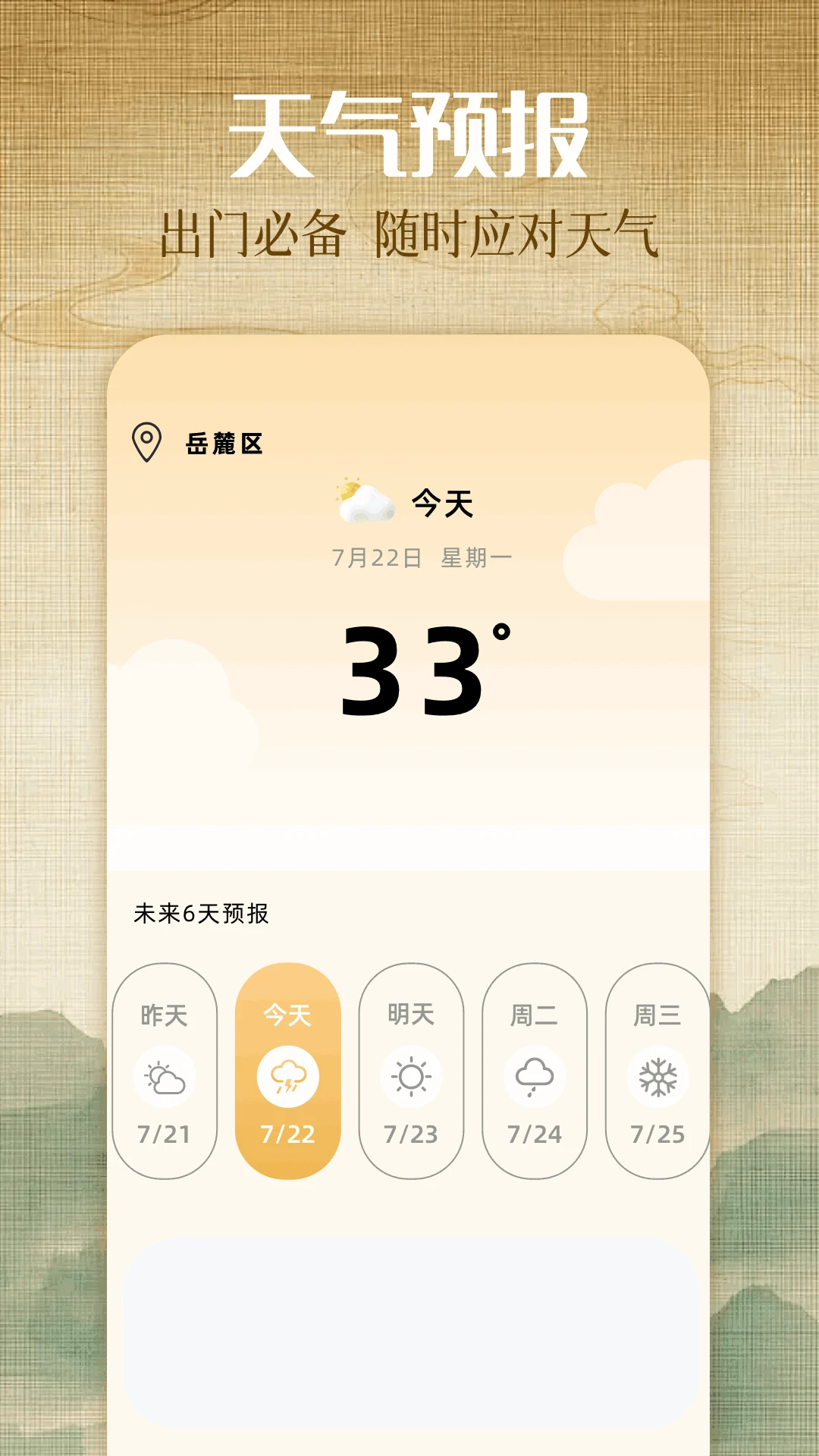 中厉万年历App集传统智慧与现代生活于一体的全能日历助手!无论是安排行程、择日办事,还是关注天气、记录生活,中厉万年历都能为您提供贴心、便捷的一站式服务。传统与科技融合,让每一天都过得更智慧、更从容!