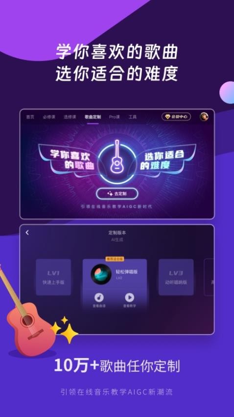 AI音乐学院吉他尤克里里无论你是零基础小白,还是想快速提升弹唱技能的爱好者,这里都能让你7天轻松入门,玩转吉他与尤克里里!立即下载AI音乐学园吉他尤克里里安卓版,让指尖流淌旋律,做朋友圈最会弹唱的人!