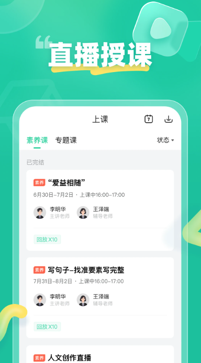 1、提供高质量在线直播课程,学生可随时举手提问、参与讨论,与名师实时互动,第一时间扫清知识盲点,让学习更主动、更高效。