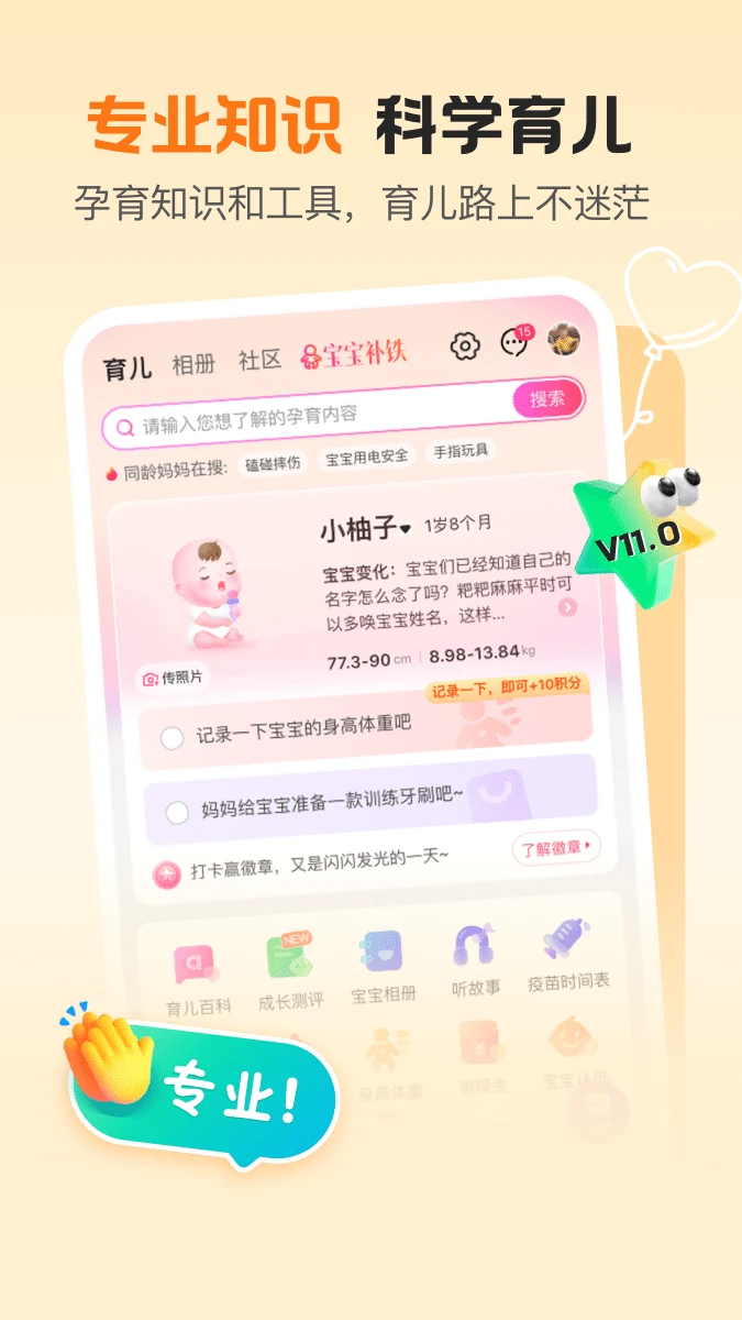 3、携手150+三甲医院主任级专家与5000+国家认证育婴师,提供从孕期到3岁+的全周期科学育儿支持。线上问答、直播课堂、成长测评……新手爸妈的每一个困惑,都有专业答案。