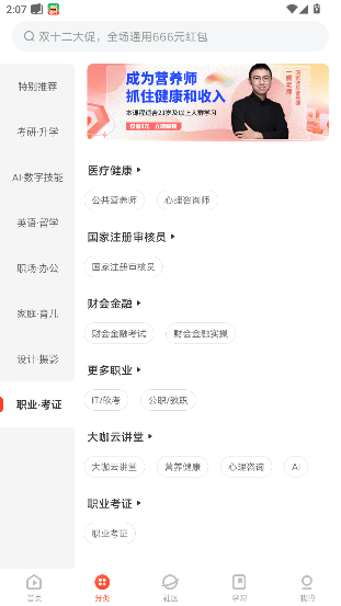 网易云课堂是网易推出的在线学习平台,聚焦职业技能与考试考证,涵盖IT、设计、考研、公考等课程,提供视频、电子书等多种学习形式,支持免费与付费内容,适合学生及职场人士提升自我。