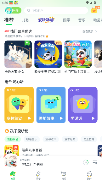 界面简洁无广告,支持护眼模式、使用时长管控及亲子共学功能,安全贴心。课程由专业教研团队打造,贴合儿童发展规律,整体体验流畅有趣,是家庭早教的优质数字伙伴。