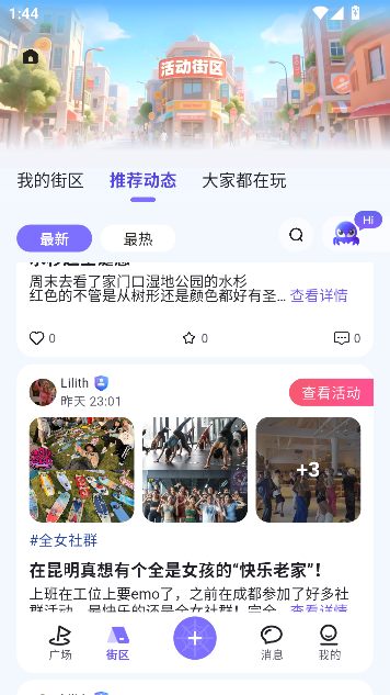 1、点击首页下方的街区按钮
