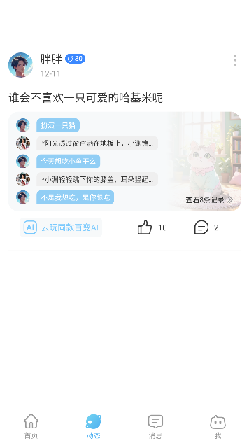 小小AI交友App是一款颠覆传统社交模式的创新交友应用,以“AI分身牵线+奇幻剧情搭桥”为核心,在这里,你的专属AI分身将化身为你理想中的“虚拟男友”或“虚拟女友”,替你开启一段打破次元壁的浪漫奇遇。