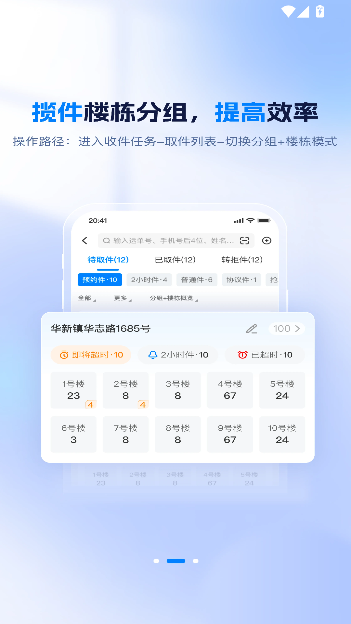 1、一键完成收件、派件操作,流程简化,大幅提升作业效率。