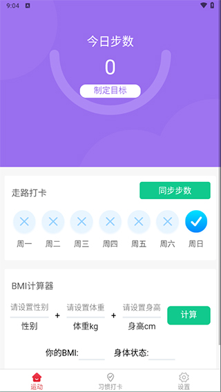 App 采用高精度计步算法,实时记录您当天的步数、步行里程、卡路里消耗等数据,一目了然掌握运动成果。同时支持设定个性化运动目标,并提供BMI(身体质量指数)计算功能,帮助您科学评估身体状况,合理规划健康生活。