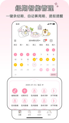 1、智能经期管理:只需一键标记经期起止时间,系统即自动学习你的周期规律,提前推送“姨妈日”温馨提醒,告别措手不及的尴尬时刻。