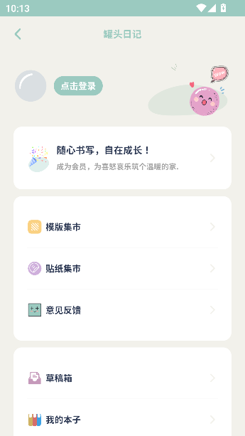 罐头日记无论你是想记录日常点滴、规划学习目标,还是收藏旅行回忆、抒发心情感悟,罐头日记都能用丰富的视觉元素和灵活的排版功能,帮你把平凡日子装点成独一无二的艺术手账。界面简洁友好,操作轻松上手,零基础也能秒变手账达人!更有定期更新的主题素材包,让每一次书写都充满新鲜感与仪式感。快来下载罐头日记官方版,用色彩与创意,把生活写成诗!