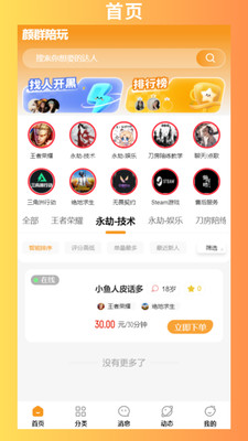 颜群陪玩是一款面向Z世代的新型社交服务平台,创新融合线上游戏陪练与线下兴趣陪伴,打破虚拟与现实的边界,为年轻人打造轻松、多元、有温度的轻社交新方式。不止是陪玩,更是同频共振的生活搭子。