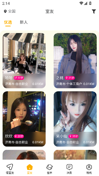 1、点击首页下方的室友按钮