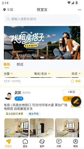 1、点击首页下方的搭室友按钮