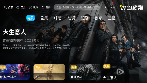 叮当TV无会员门槛,无隐藏收费,打开即看,畅享无忧;支持1080P/4K超清画质,加载快、不卡顿,带来沉浸式家庭影院体验;每日上新,紧跟全网热度,院线新片、热播剧集一网打尽;专为大屏遥控操作设计,布局清晰、操作流畅,老人小孩都能轻松上手! 无论是周末全家观影,还是深夜独自追剧,叮当TV 都是你客厅里的私人影视管家!