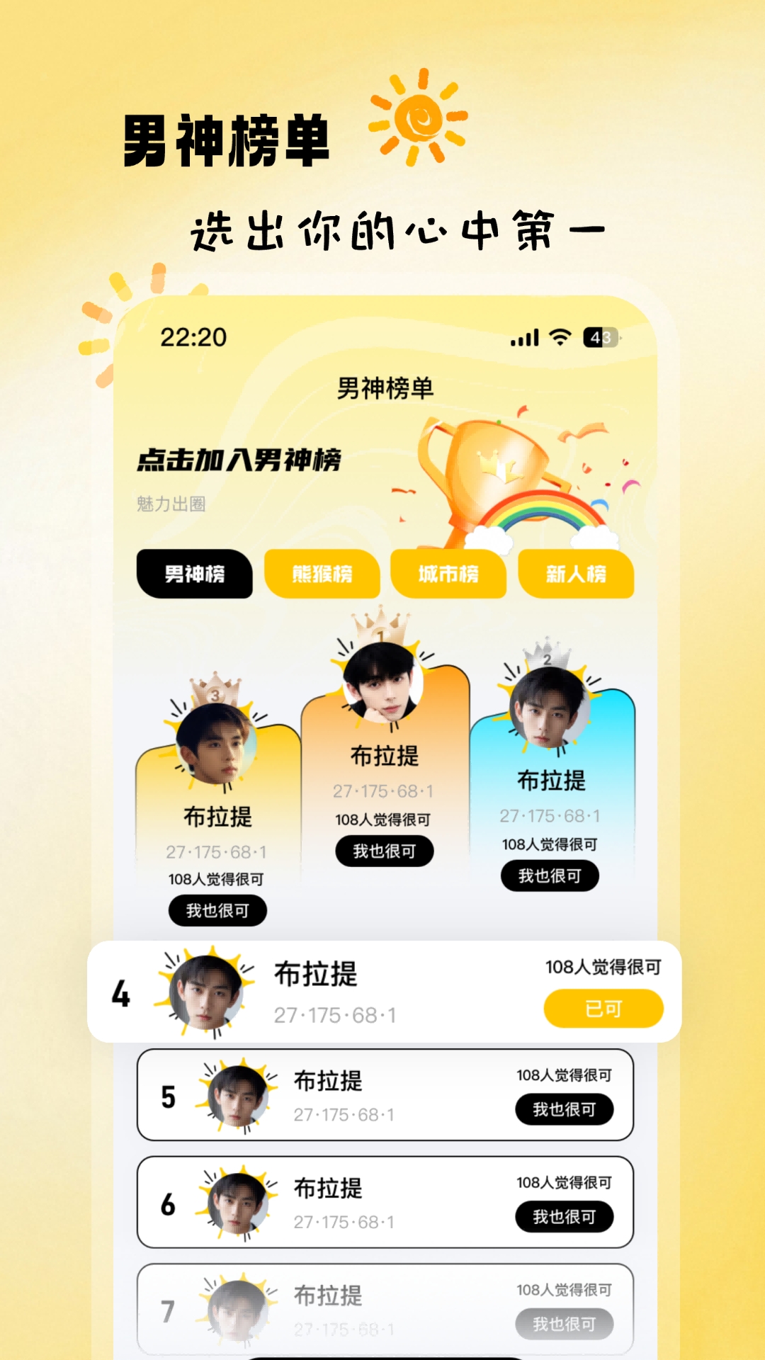 3、兴趣精准推荐——内置智能匹配算法,结合你的兴趣爱好与交友偏好,为你推荐契合度更高的对象,显著提升交友成功率。