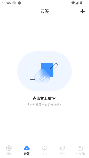 1、点击首页下方的云签按钮
