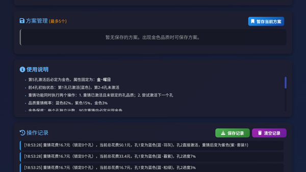 4、新增方案保存与管理功能,支持创建、命名并快速切换多套计算配置,方便玩家在不同场景下灵活调用。