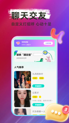 1、界面采用温馨柔和的配色与细腻动效,打造轻松治愈的社交环境,让用户快速放松心情,自在开启对话。