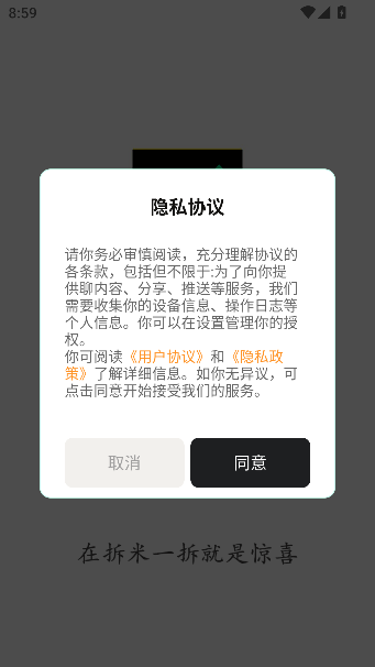 1、打开app点击同意隐私协议政策