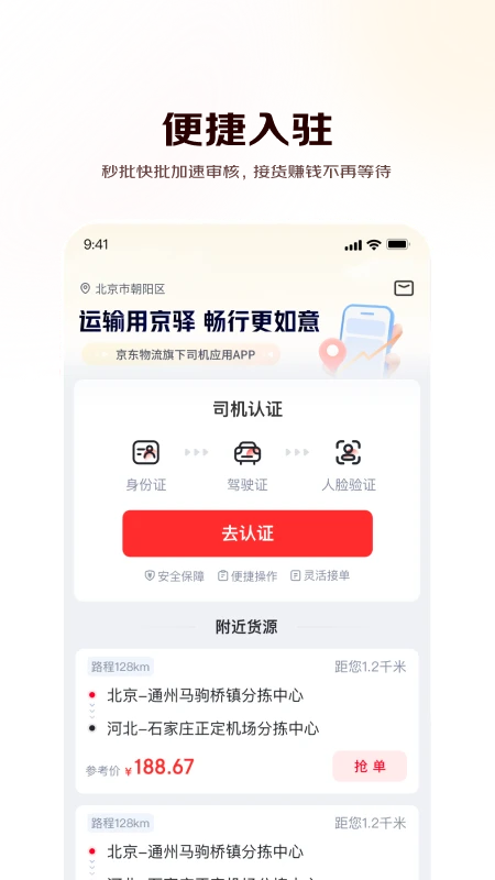 京驿货车作为京东物流生态的重要一环,致力于为全国广大货车司机提供安全、高效、透明的一站式在线接单与货运服务。无论你是个体司机还是车队运营者,这里都是你稳定增收、安心拉货的理想选择!
