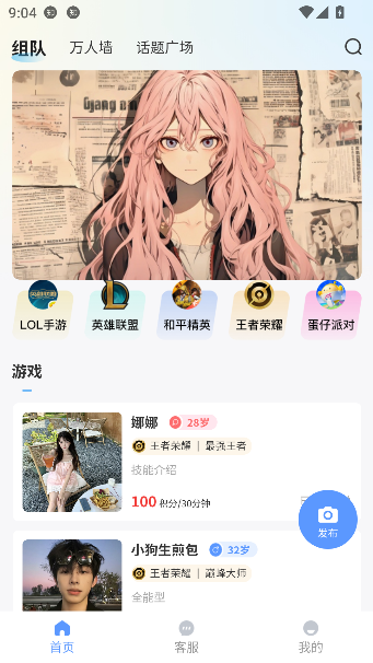 2、成功进入首页后,您将看到平台为多款热门游戏提供的专业陪玩服务。无论是技术上分还是娱乐开黑,应有尽有。
