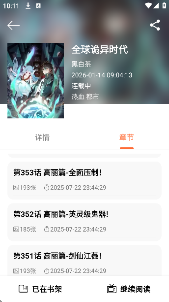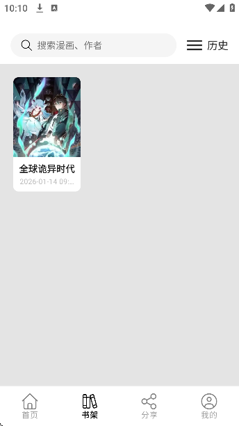 3、接着就可以在书架中看到这部漫画了。