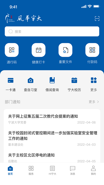 2、聚合权威、及时、多元的校园资讯:涵盖学校官网公告、各学院通知、学术讲座预告、校园文化活动报名、就业招聘信息发布、学生组织动态等内容,让您不错过任何重要信息,始终与宁大脉搏同频共振。
