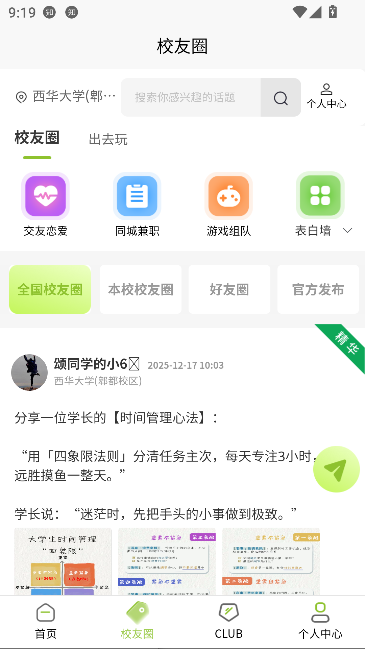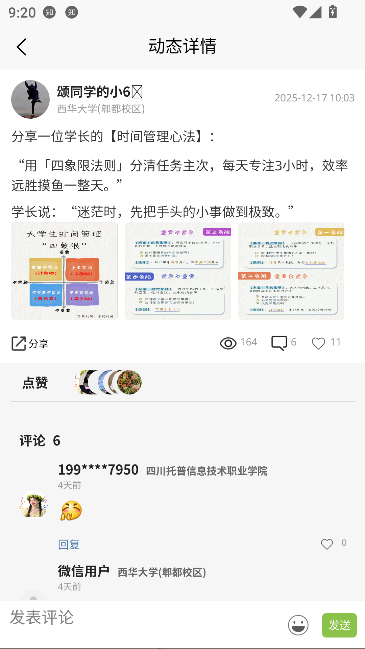 颂同学App是一款专为四川高校学子打造的本地化校园社区平台,深度融合校园生活、本地娱乐、文旅出行、优惠福利等多元服务,致力于成为你大学生活中不可或缺的“贴心伙伴”。立足四川,服务高校,连接青春。
