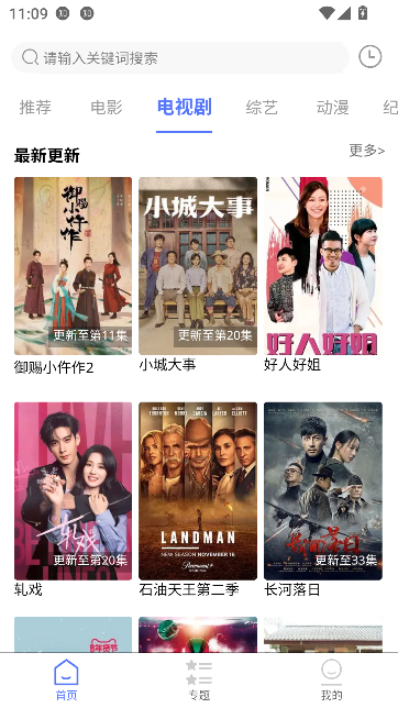 1、下载并启动粤正影视手机版后,在首页顶部找到并点击【搜索】按钮,快速进入全局搜索页面。