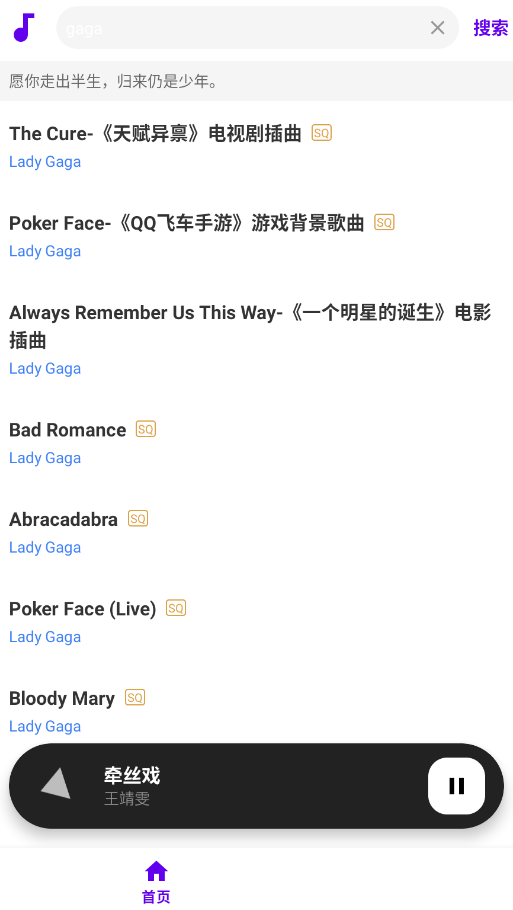 聚合全网资源播放:用户打开后能搜索并播放歌曲,不需要付费会员。