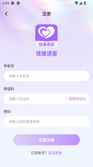 佳缘语音交友App是一款专为单身人群打造的高品质婚恋社交平台,创新以语音为核心互动方式,打破传统文字聊天的冰冷与局限,让情感连接从“听见”开始。立即下载佳缘语音交友App,遇见那个愿意和你认真谈恋爱的人!